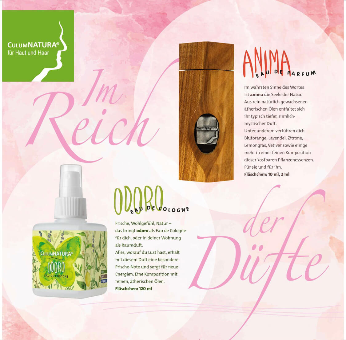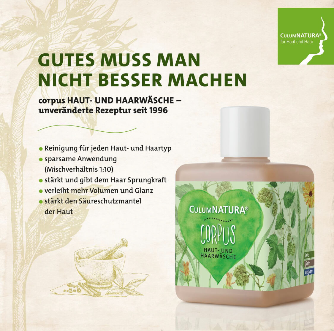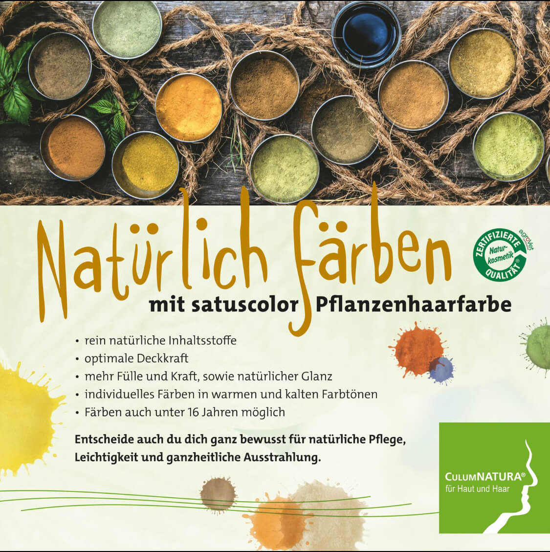 Da wir uns der Verantwortung bewusst sind, als Unternehmen ökologisch und nachhaltig zu arbeiten, ist es für uns wichtig, natürliche Haut- und Haarpflegeprodukte zum Wohle von Mensch und Umwelt zu nutzen. Aus diesem Grund nutzen wir überwiegend pflanzliche Farben. So setzen wir auf die Produkte von CULUMNATURA®, eine garantiert biozertifizierte Haut- und Haarpflege mit ehrlicher Inhaltsdeklaration.